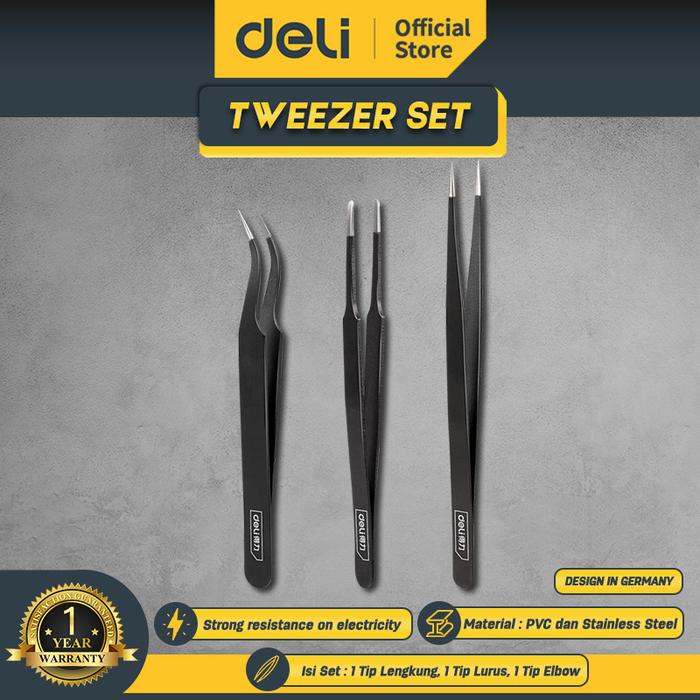 Harga Terjangkau, Kualitas Profesional! Dapatkan set pinset Deli ini sekarang untuk kebutuhan presisi Anda.