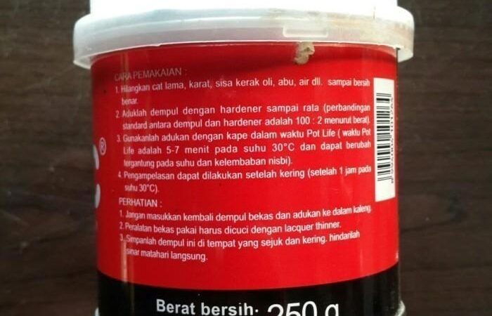 - Campur dempul dan hardener sesuai petunjuk untuk hasil optimal.