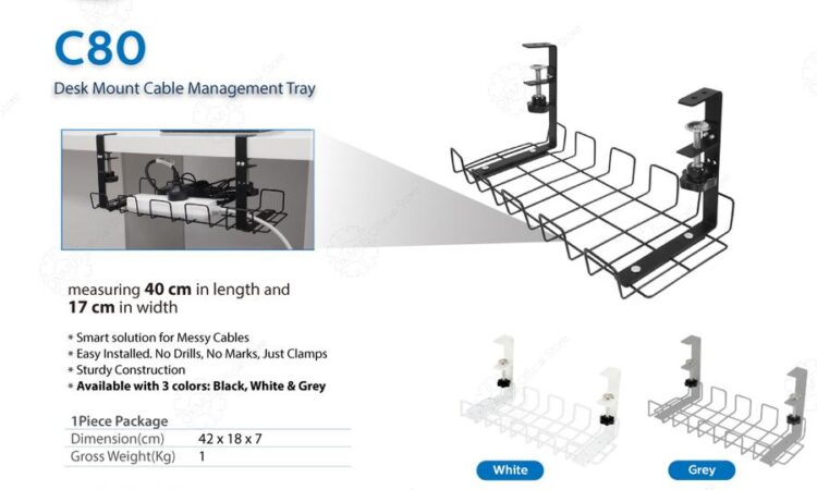 Solusi praktis untuk mengatur kabel di bawah meja kerja Anda! Dengan desain yang sleek dan material kokoh, OXIMUS C80 membantu menjaga kerapian kabel sekaligus meningkatkan estetika ruang kerja.
