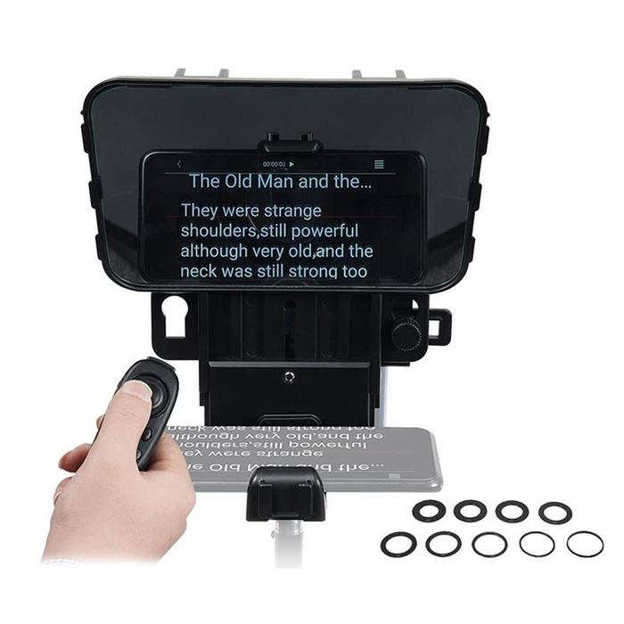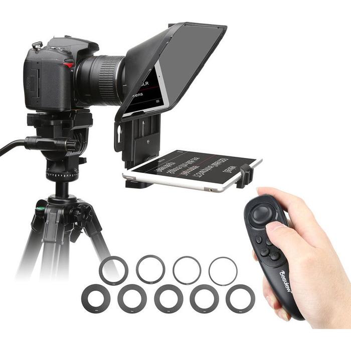 Kompatibel dengan kamera DSLR berkat set ring adapter dari 49mm hingga 82mm, menjamin sambungan yang kokoh dan bebas goncangan. Aplikasi prompting eksklusifnya mendukung perangkat Android dan iOS, memudahkan Anda mengontrol kecepatan teks dan menyesuaikan tampilan naskah.