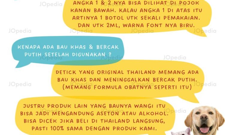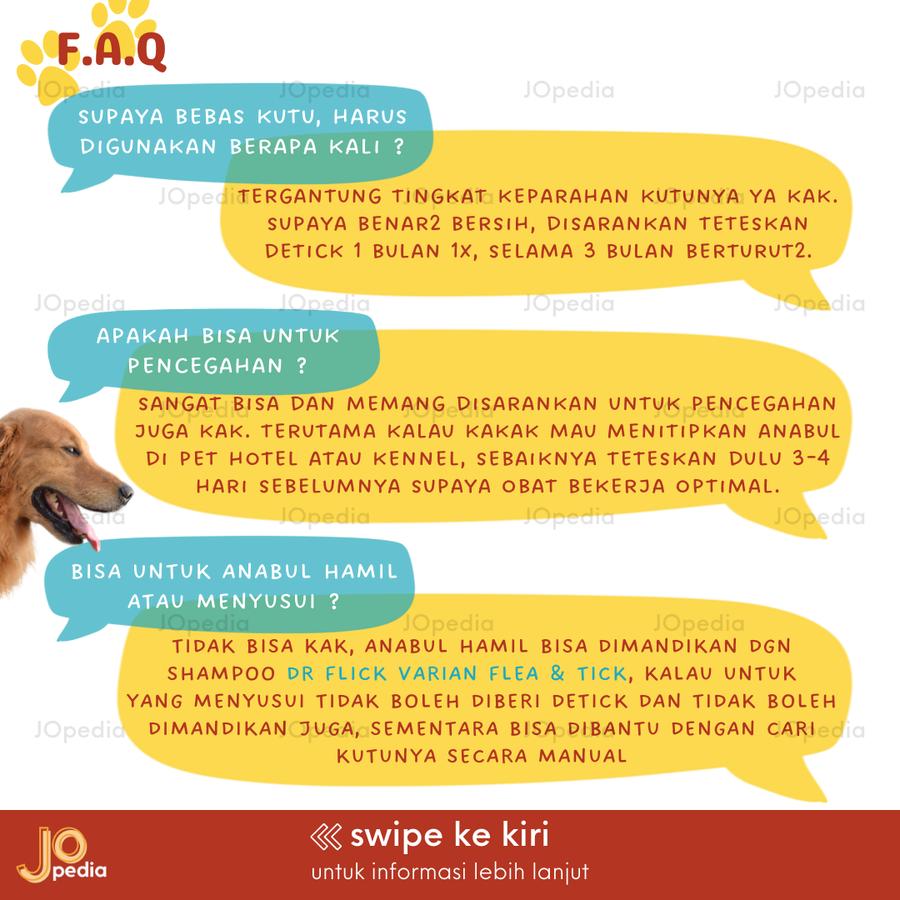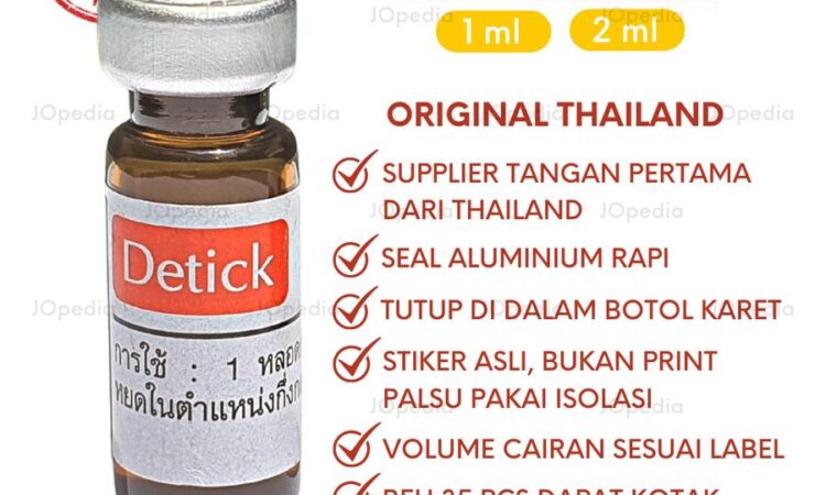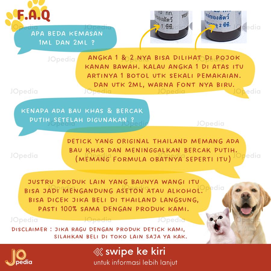 | Detick Original | ✔ Langsung dari supplier Thailand ✔ Banyak dipakai petshop & klinik hewan ✔ Efektif basmi kutu & caplak | 1ml (0-10kg) 2ml (10-20kg) | 35 pcs |