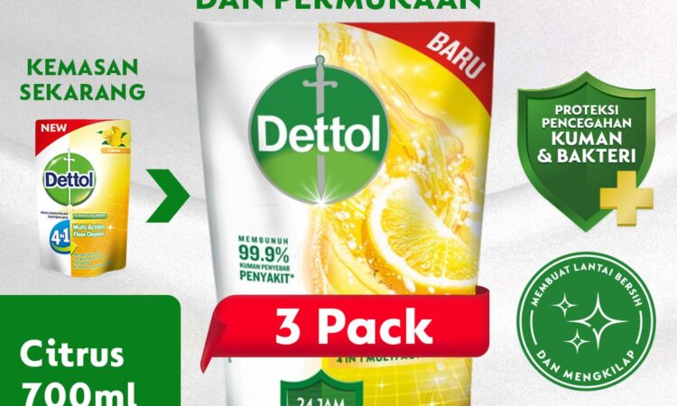 Isi paket Anda adalah 3 pouch Dettol Pembersih Lantai Citrus berukuran 700ml. Formula unggulannya dirancang untuk memberikan performa maksimal dalam membersihkan rumah.