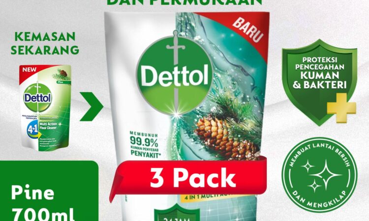 Dapatkan kebersihan maksimal dan perlindungan terbaik untuk seluruh keluarga dengan Dettol Pembersih Lantai Pine dalam paket hemat berisi 3 pouch. Formula unggulannya dirancang khusus untuk mengangkat noda membandel sekaligus membunuh 99.9% kuman, virus, dan bakteri berbahaya yang dapat menyebabkan penyakit.
