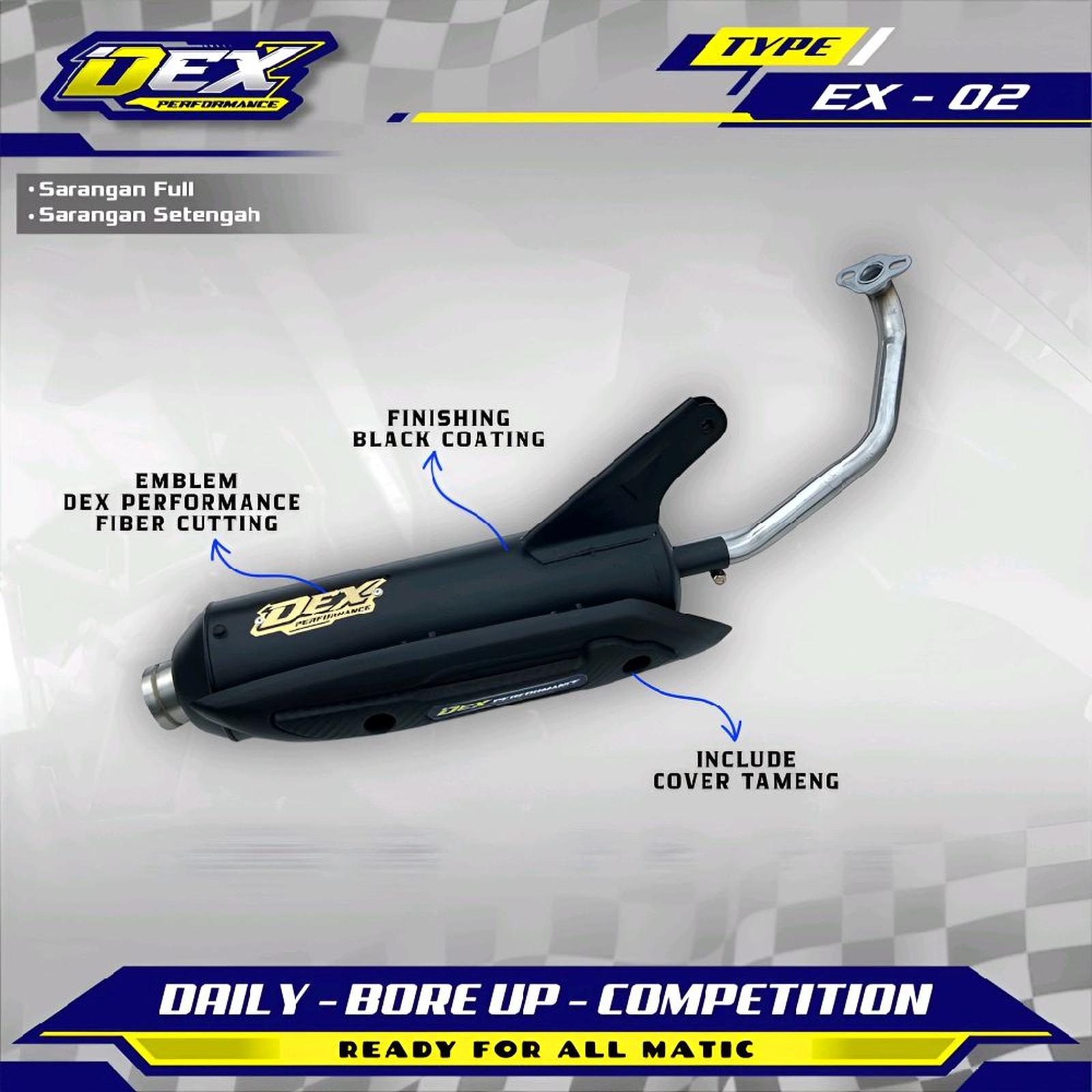 Tingkatkan pengalaman berkendara Anda dengan Knalpot Dex Performance Ex-02, solusi upgrade tanpa kompromi untuk motor Anda. Dibekali dengan teknologi dan material pilihan, knalpot ini dirancang untuk menghasilkan suara bass yang dalam dan berkarakter namun tetap nyaman (adem) untuk telinga. Desain moncong cincinnya yang baru memberikan tampilan yang lebih sporty dan agresif.