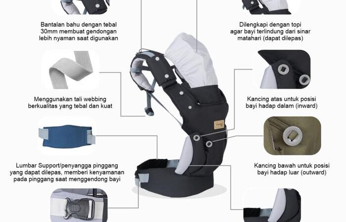 | Desain | Mengadopsi desain M-Shape yang ergonomis untuk menjaga posisi alami bayi (panggul terbuka dan lutut lebih tinggi dari pantat) serta nyaman bagi penggendong. |