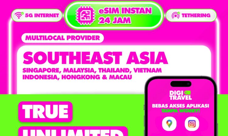 Nikmati koneksi internet super cepat di Singapore, Malaysia, Thailand, Indonesia, Vietnam, Hongkong, dan 190+ negara lainnya langsung dari ponselmu. Sejak 2017, DIGITRAVEL telah dipercaya sebagai penyedia eSIM dan SIM luar negeri terbaik dengan jaminan koneksi aktif 100%.