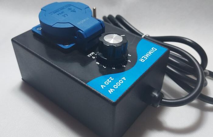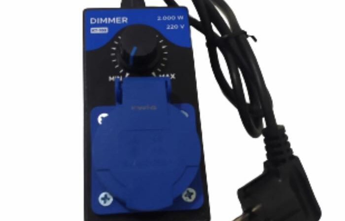 - Dimmer: Alat pengatur daya listrik yang berfungsi untuk mengontrol tingkat kecerahan lampu atau kecepatan putaran motor listrik dengan memotong gelombang tegangan (phase cutting).
