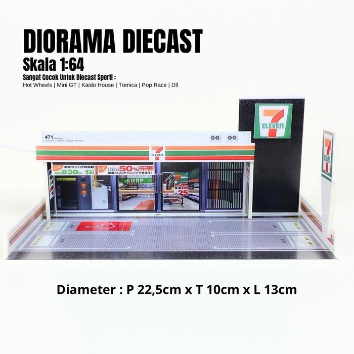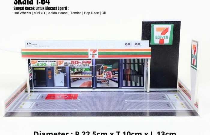 Wujudkan koleksi diecast impian Anda dengan diorama 7-Eleven berlogo ikonik ini! Dirancang khusus dalam skala 1:64, diorama ini sangat cocok untuk memajang mobil-mobil Hot Wheels kesayangan Anda sehingga tampilan koleksi menjadi lebih rapi, hidup, dan profesional.