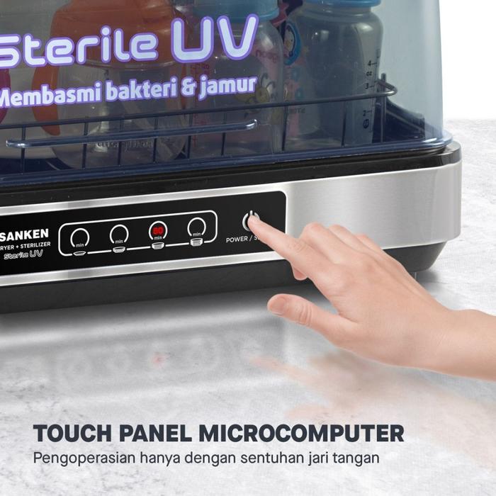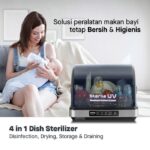 Dilengkapi dengan UV Lamp Sterilization yang efektif membasmi mikroorganisme hingga 99.99% dan Drying Sterilization dengan suhu panas 70°C untuk melumpuhkan bakteri penyebab penyakit. Materialnya terbuat dari Certified Highest Quality Type 304 yang anti korosi dan sangat higienis.