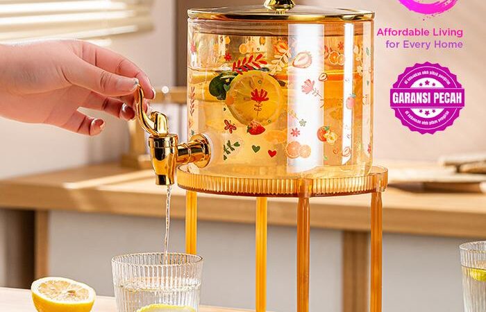 Dispenser air kaca ini tidak hanya praktis untuk menyimpan air minum dingin, tetapi juga menjadi aksen dekoratif yang mempercantik dapur atau ruang makan. Dibuat dari kaca borosilikat yang tahan panas dan ramah lingkungan, dispenser ini aman untuk digunakan sehari-hari.