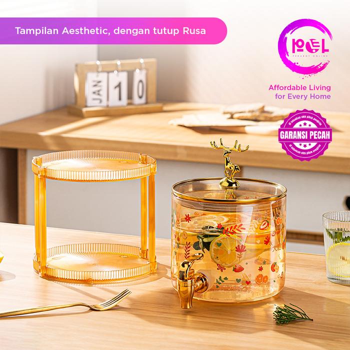 Dispenser air kaca ini tidak hanya praktis untuk menyimpan air minum dingin, tetapi juga menjadi aksen dekoratif yang mempercantik dapur atau ruang makan. Dibuat dari kaca borosilikat yang tahan panas dan ramah lingkungan, dispenser ini aman untuk digunakan sehari-hari.