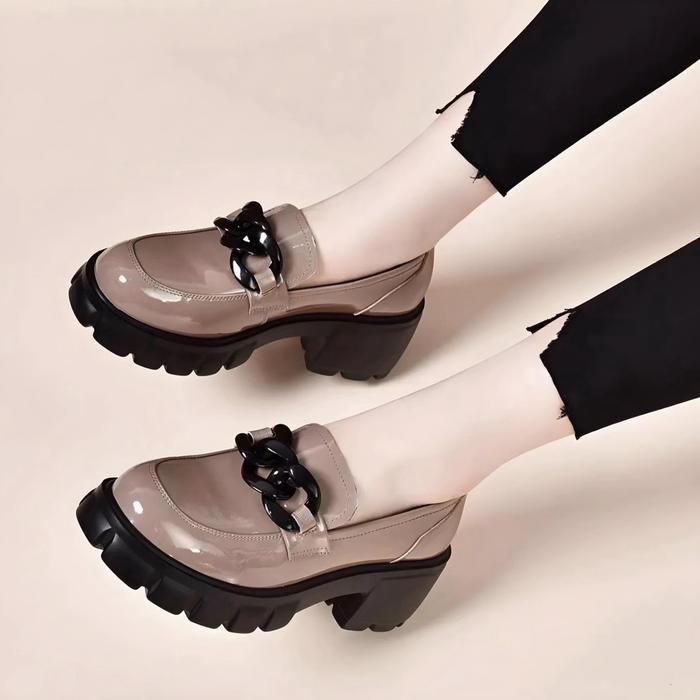 - Hak datar 5 cm memberikan kenyamanan maksimal tanpa mengorbankan estetika.