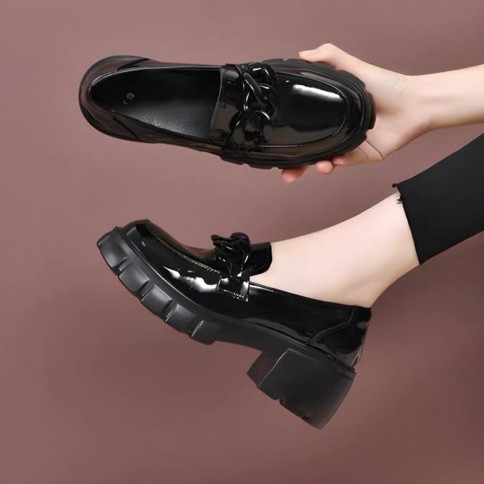 | Model | Oxford hitam glossy dengan detail rantai di samping |