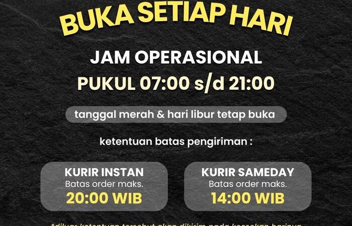 - Pesanan di luar ketentuan akan diproses pada hari berikutnya.
