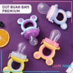 Dot Buah / Empeng Buah PREMIUM dengan desain khusus untuk bayi belajar mengunyah, menghisap, dan mengenal sari makanan halus seperti buah, sayur, atau ikan. Dilengkapi tutup higienis dan motif lucu yang disukai bayi!