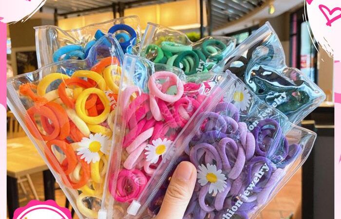 • Pouch: Kantung kecil yang disertakan untuk menyimpan karet rambut agar tetap rapi dan tidak hilang.