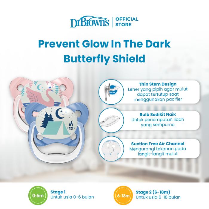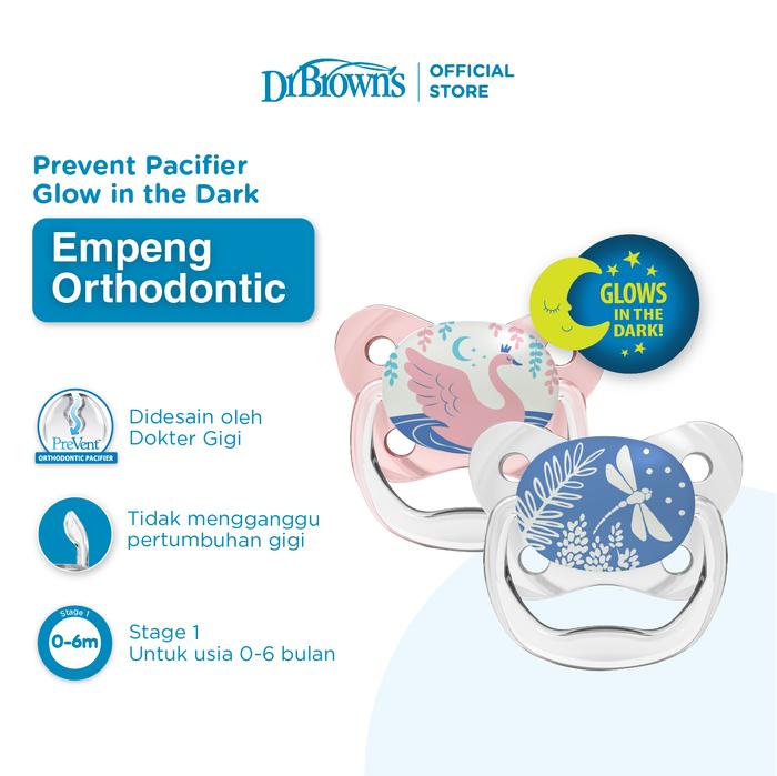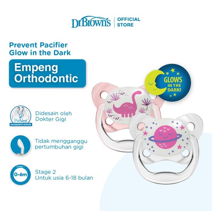- Dr. Brown’s Prevent Glow in the Dark Pacifier – Pink – Stage 1 (0–6 bulan)