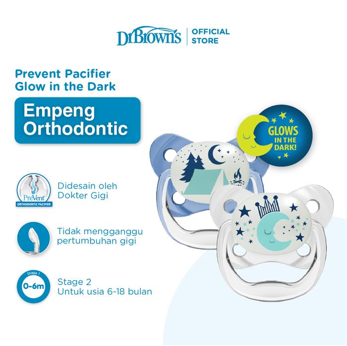- Dr. Brown’s Prevent Glow in the Dark Pacifier – Biru – Stage 2 (6–18 bulan)