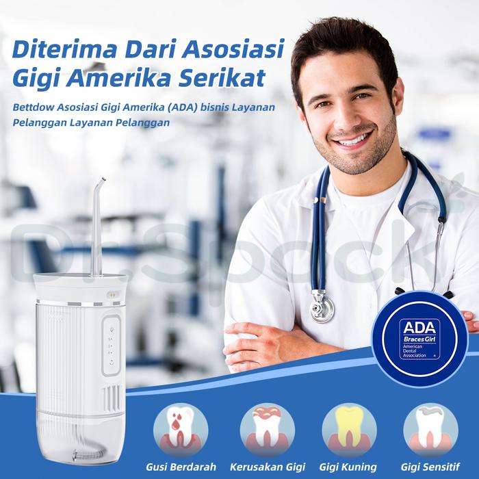 Dengan fitur unggulan seperti desain pengisian hisap yang mencegah air masuk ke port charger, cermin built-in untuk memantau hasil pembersihan, dan teknologi bola gravitasi yang memastikan air dapat disedot sempurna dari segala sudut. Tingkat kedap air IPX7 membuatnya aman digunakan di kamar mandi. Terakreditasi oleh Asosiasi Gigi Amerika Serikat (ADA), Dr.spock Water Flosser adalah investasi terbaik untuk senyum yang lebih sehat dan percaya diri.