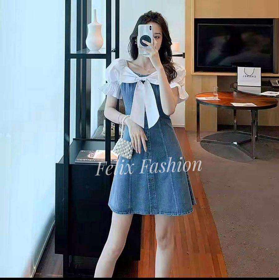 Temukan gaya kasual yang trendy dengan Dress Jeans Wanita Lengan Pendek kami! Dibuat dari bahan berkualitas dengan desain unik berupa kombinasi karet dan katun, dress ini cocok untuk tampilan santai nan modis.