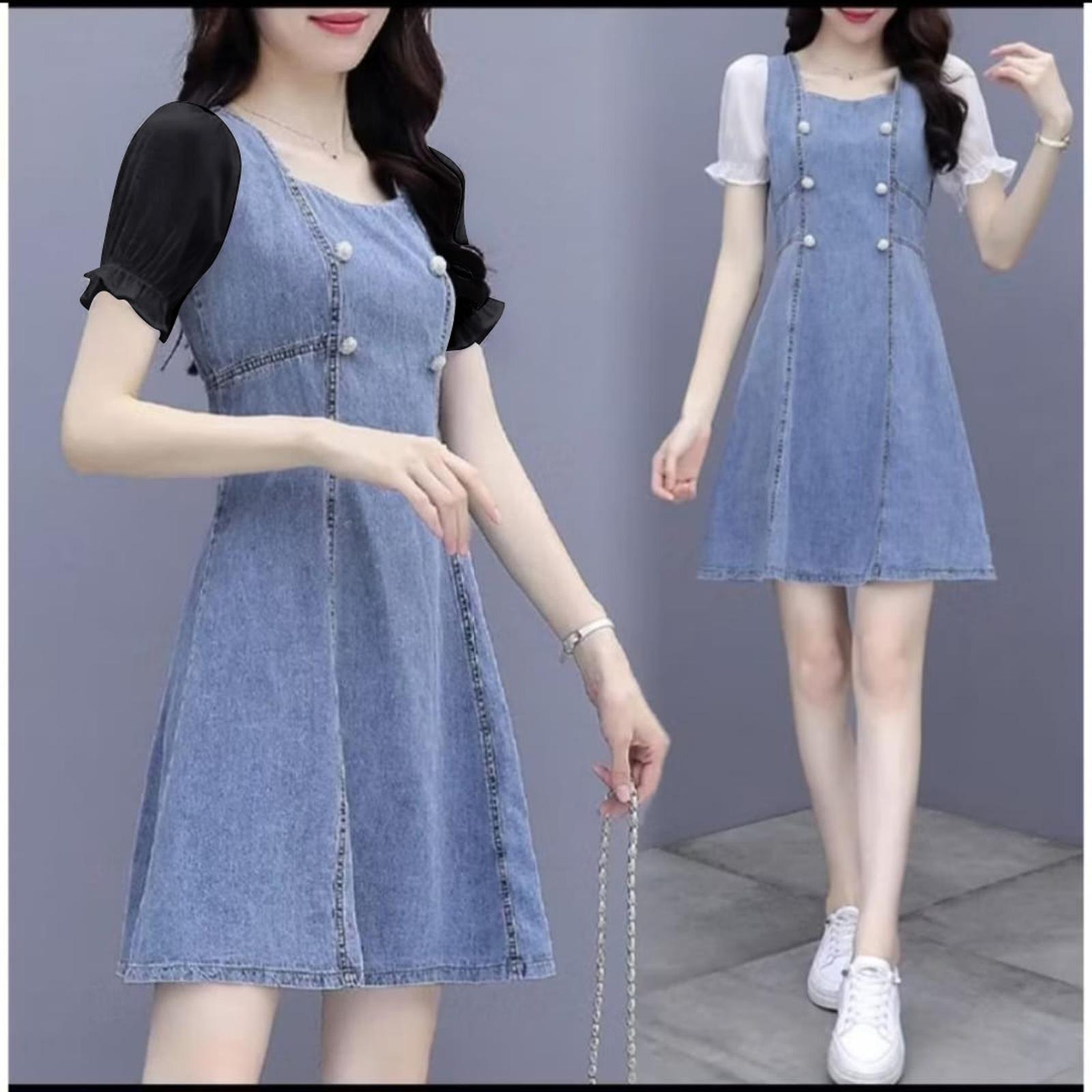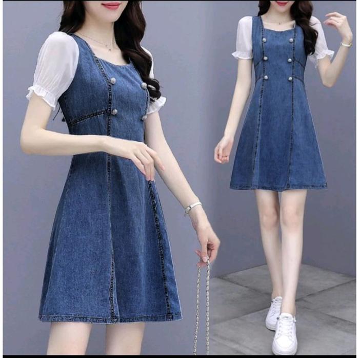 Tampil modis dan elegan dengan Dress Jeans kombinasi sifon terbaru kami. Potongan lengan pendek memberikan kesan casual yang fresh, sementara material jeans halus dan adem menjamin kenyamanan sepanjang hari. Detail kombinasi sifon di bagian bawah menambah sentuhan feminin dan graceful pada setiap langkah Anda.
