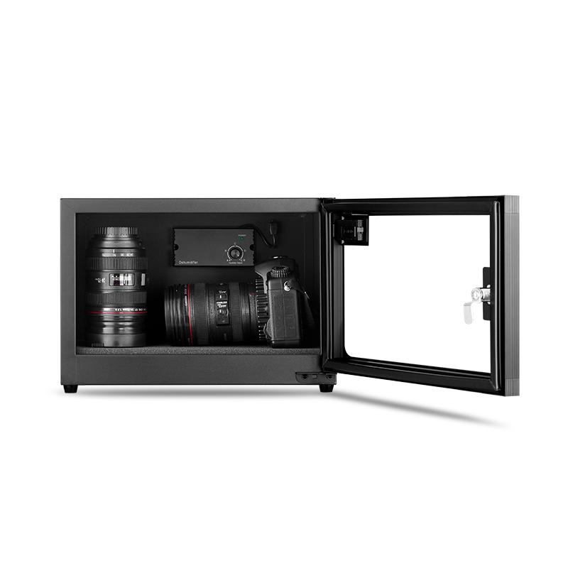 - Dry Box/Dry Cabinet: Wadah kedap udara dengan pengontrol kelembapan untuk menyimpan peralatan sensitif seperti kamera, lensa, atau elektronik lainnya.