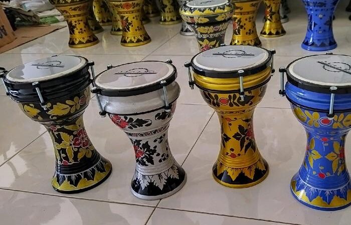 - Darbuka: Alat musik perkusi berbentuk seperti gendang kecil, sering digunakan dalam musik Timur Tengah dan pengiring sholawat.