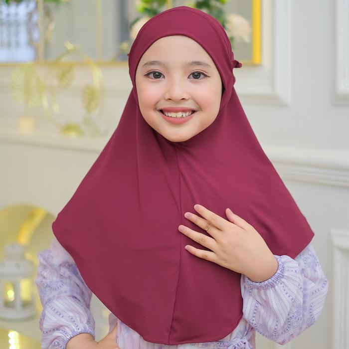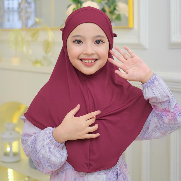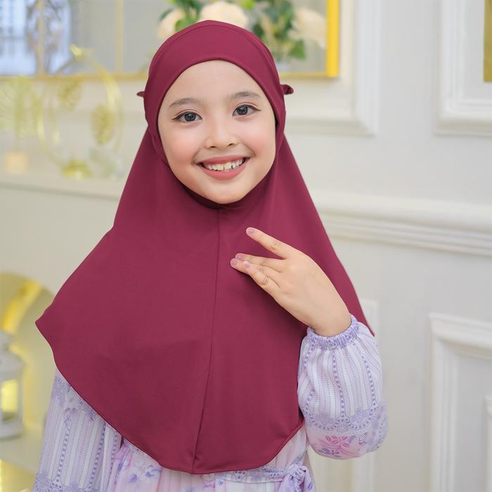 Terbuat dari bahan Spandex Balloon Grade A yang terkenal dengan kelenturan dan kelembutannya. Material ini sangat ringan, adem, dan memiliki serat kain yang kuat untuk menjamin keawetan. Desainnya yang bergo instan memudahkan si kecil memakainya sendiri tanpa ribet.