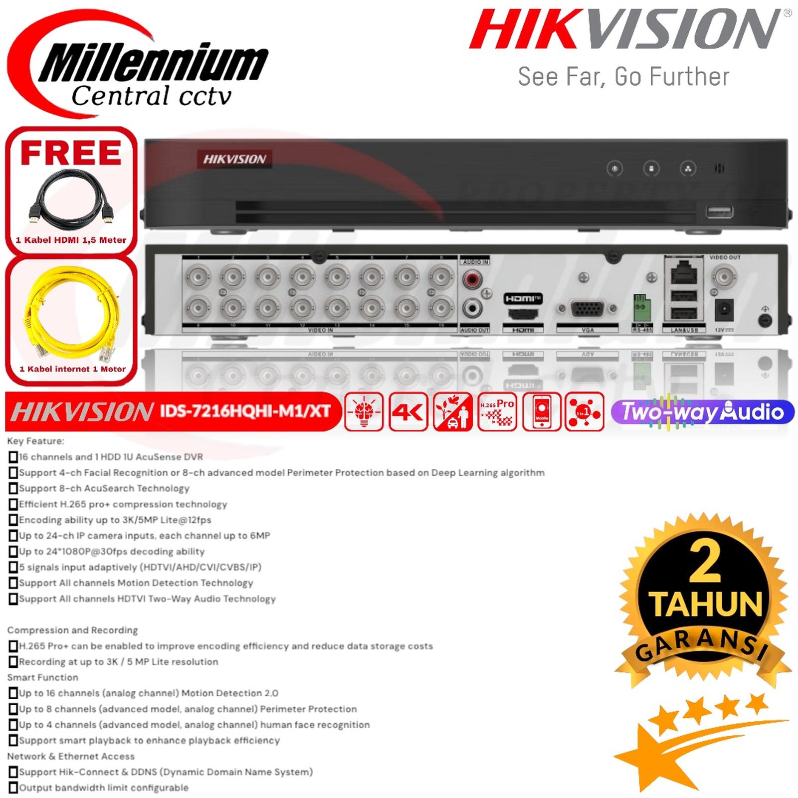 Dilengkapi dengan teknologi kompresi H.265 Pro+ yang menghemat ruang penyimpanan hingga 90%, mendukung 1 slot HDD hingga 10TB (harddisk dijual terpisah). DVR ini juga telah mendukung sambungan cloud via Hik-Connect, memungkinkan Anda memantau properti dari mana saja secara real-time.