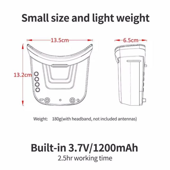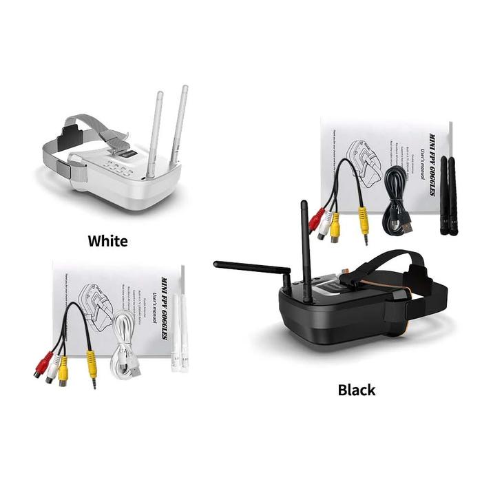 Paket Termasuk: 1x Goggle VR009, 1x Baterai 1200mAh, 2x Antena, 1x Kabel USB, 1x Manual.