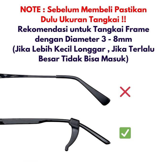 KompatibilitasCocok untuk berbagai frame kacamata dengan diameter tangkai antara 3mm hingga 8mm.