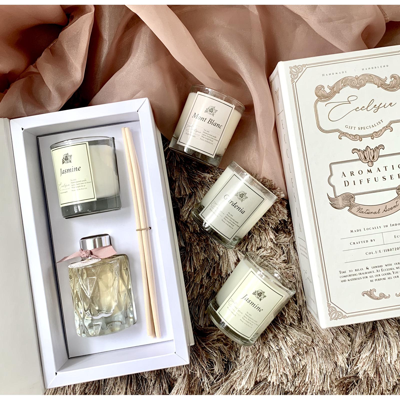 Hadirkan keanggunan dan keharuman yang menyegarkan untuk ruangan Anda dengan Ecclesia Signature Gift Set. Setiap set hadiah eksklusif ini dirancang untuk memberikan pengalaman aromaterapi yang maksimal dan dekorasi yang indah.