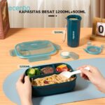 | Kapasitas Total | Kotak Makan 1200ml + Botol/Tumbler 500ml |
