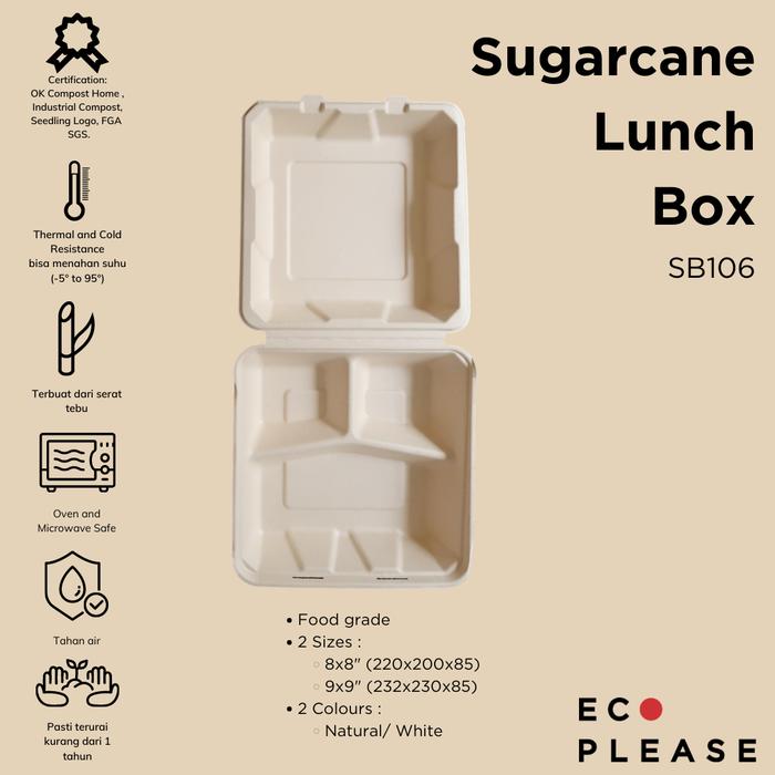 Tingkatkan penyajian makanan Anda dengan Ecoplease Bento Box. Terbuat dari 100% Bagasse (ampas tebu) yang merupakan sumber daya terbarukan, kotak makan ini menawarkan solusi kemasan premium yang kuat dan ramah lingkungan. Ideal untuk usaha makanan online, katering pesta, bakery, dan kebutuhan bisnis kuliner lainnya.