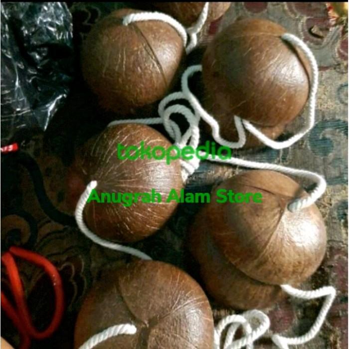 | Bahan | Batok kelapa pilihan, sudah dibersihkan dari sabut, dan dilengkapi tali pramuka (tali bandring) yang kuat. |