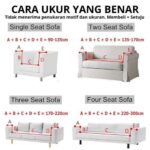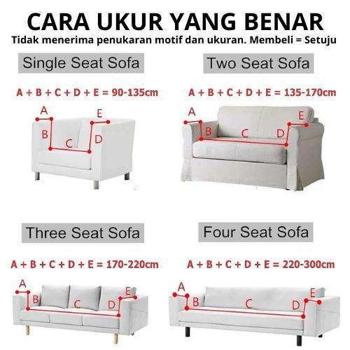 - WAJIB mengukur sofa Anda mengikuti panduan ukur (lihat foto di slide ke-3). Setiap sofa memiliki ketebalan berbeda, ukuran 3 seater belum tentu cocok untuk semua sofa 3 dudukan.