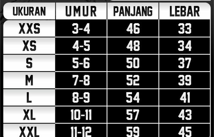 Size Chart Anak (Tentukan ukuran di chat):