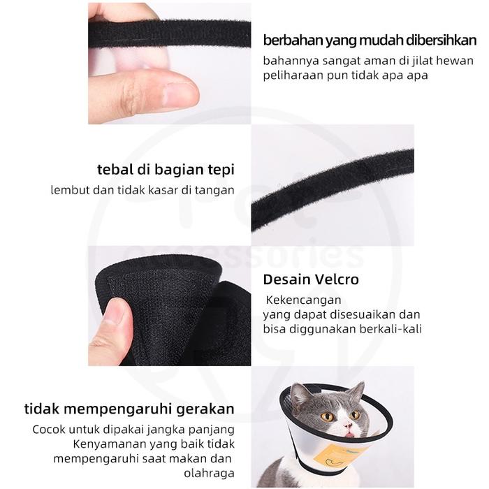 | Fungsi Utama | Mencegah anjing atau kucing menjilati, menggaruk, atau menggigit bagian tubuh yang sedang dalam proses penyembuhan. |
