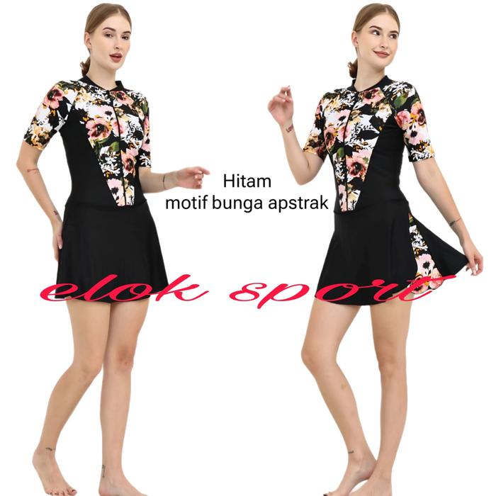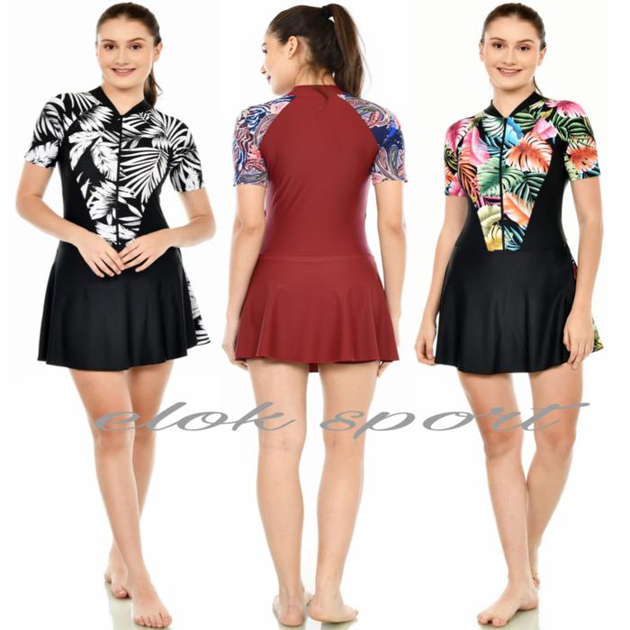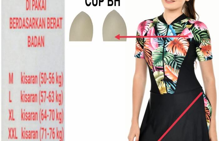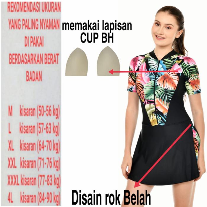 | Model | Diving rok lapis celana di atas lutut, lengan pendek, resleting depan, dan lapisan cup BH. |