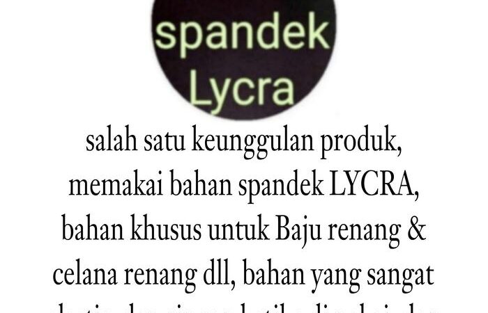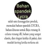 - Spandex Lycra Premium: Bahan sintetis elastis yang tahan terhadap klorin dan air asin, cocok untuk pakaian renang.