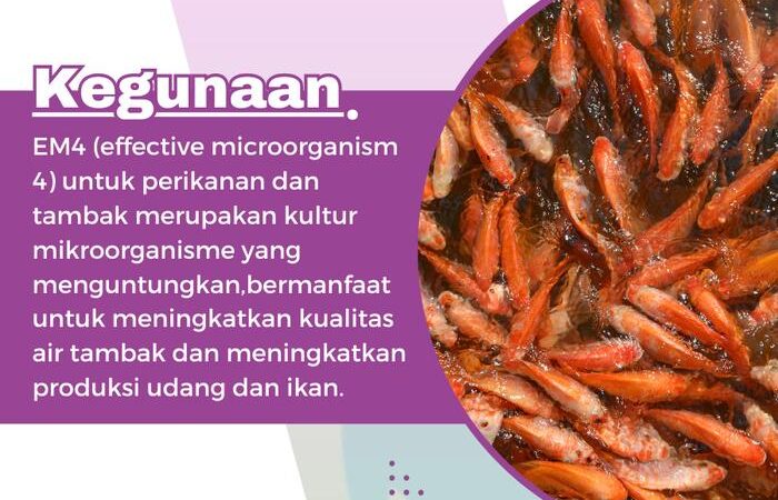 Tingkatkan produktivitas tambak udang dan ikan Anda dengan EM4 Perikanan dan Tambak 1 Liter. Produk ini mengandung kultur Effective Microorganisms 4 yang terdiri dari mikroba menguntungkan untuk menciptakan lingkungan budidaya yang optimal dan sehat.