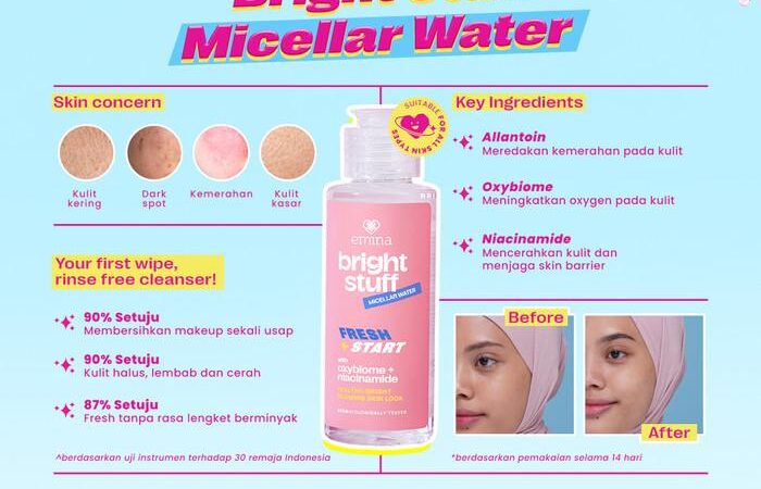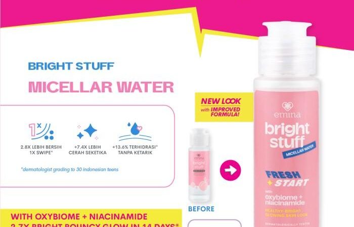 Dapatkan wajah bersih bercahaya dengan Emina Bright Stuff Micellar Water! Tersedia di e-commerce dan gerai kosmetik terdekat.