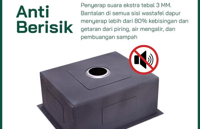 - Lapisan Peredam – Dilengkapi bantalan karet untuk mengurangi cipratan air dan kebisingan.