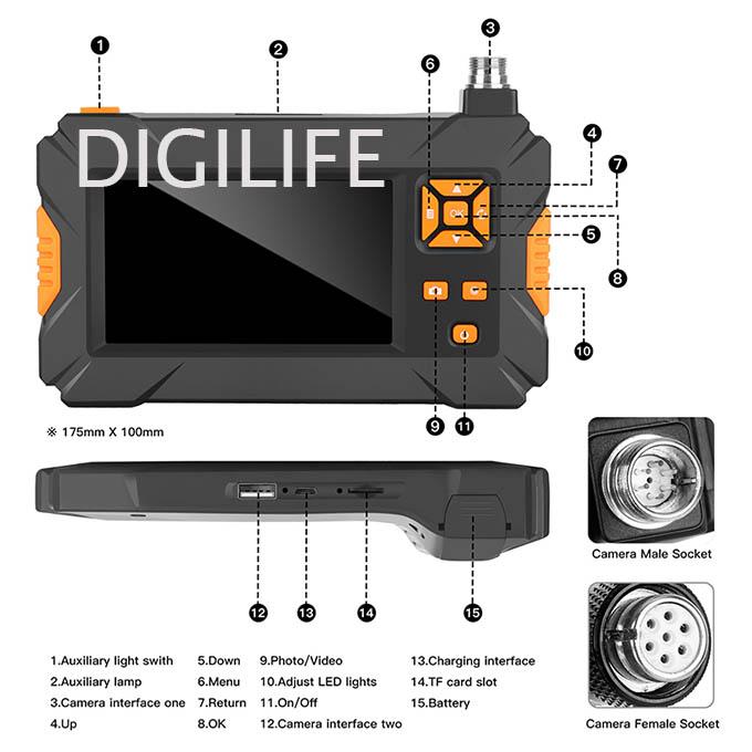 Kamera endoskopi serbaguna untuk inspeksi industri, otomotif, perumahan, laboratorium, dan riset. Dilengkapi layar besar 4.3 inci resolusi 1080p, tahan air (IP67), dan baterai 2600 mAh untuk penggunaan lama.