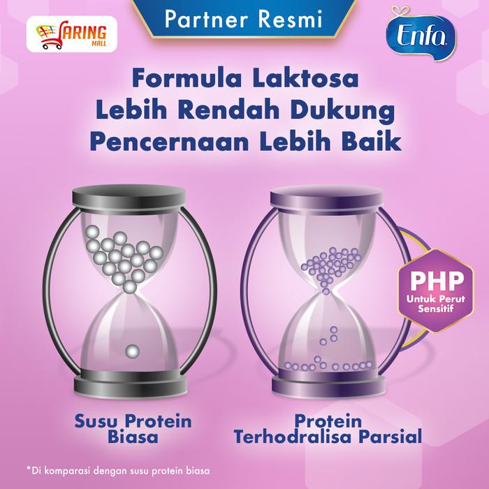 - Protein Terhidrolisa Parsial (PHP): Proses dimana protein susu dipecah menjadi bagian-bagian yang lebih kecil. Protein yang terhidrolisis sebagian ini lebih mudah dicerna dan diserap oleh perut bayi yang sensitif, mengurangi potensi gangguan pencernaan.