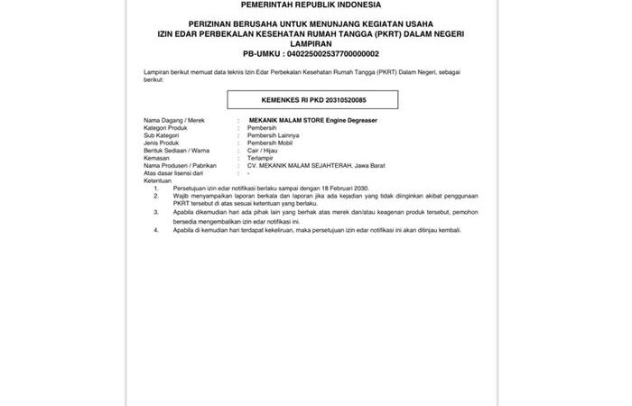 - Engine Degreser: Cairan pembersih khusus yang dirancang untuk menghilangkan kotoran berminyak, kerak, dan grease pada mesin.