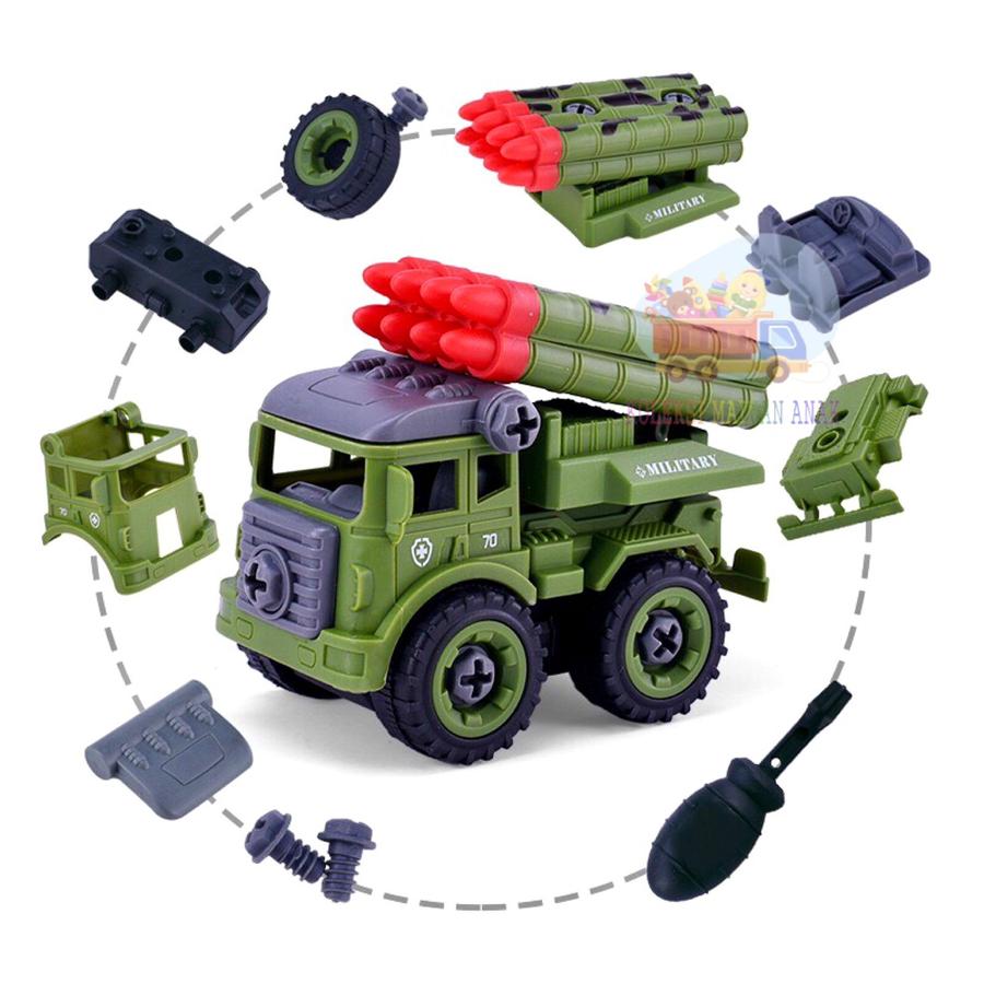 Belajar sambil bermain dengan Engineering Truck DIY Military! Mainan edukasi ini cocok untuk melatih kreativitas, imajinasi, serta koordinasi mata dan tangan anak. Dengan konsep bongkar pasang, si kecil bisa merakit 4 jenis mobil militer berbeda menggunakan obeng khusus.
