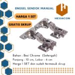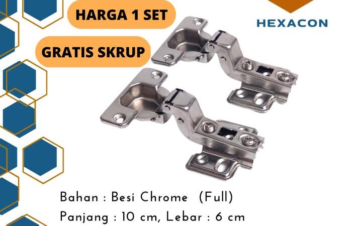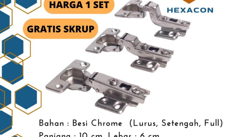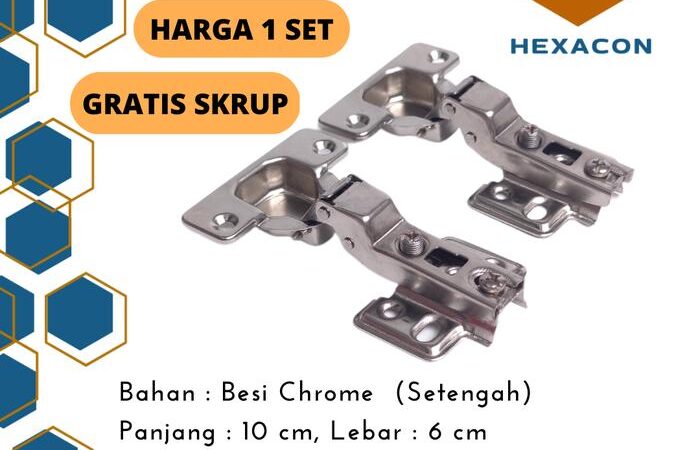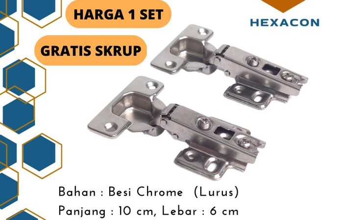Harga yang tertera sudah untuk SATU SET (2PCS) dan sudah TERMASUK SKRUP lengkap, sehingga Anda tidak perlu membeli komponen lain secara terpisah. Dengan dimensi yang tepat, engsel ini mudah dipasang dan sesuai dengan berbagai model furniture.
