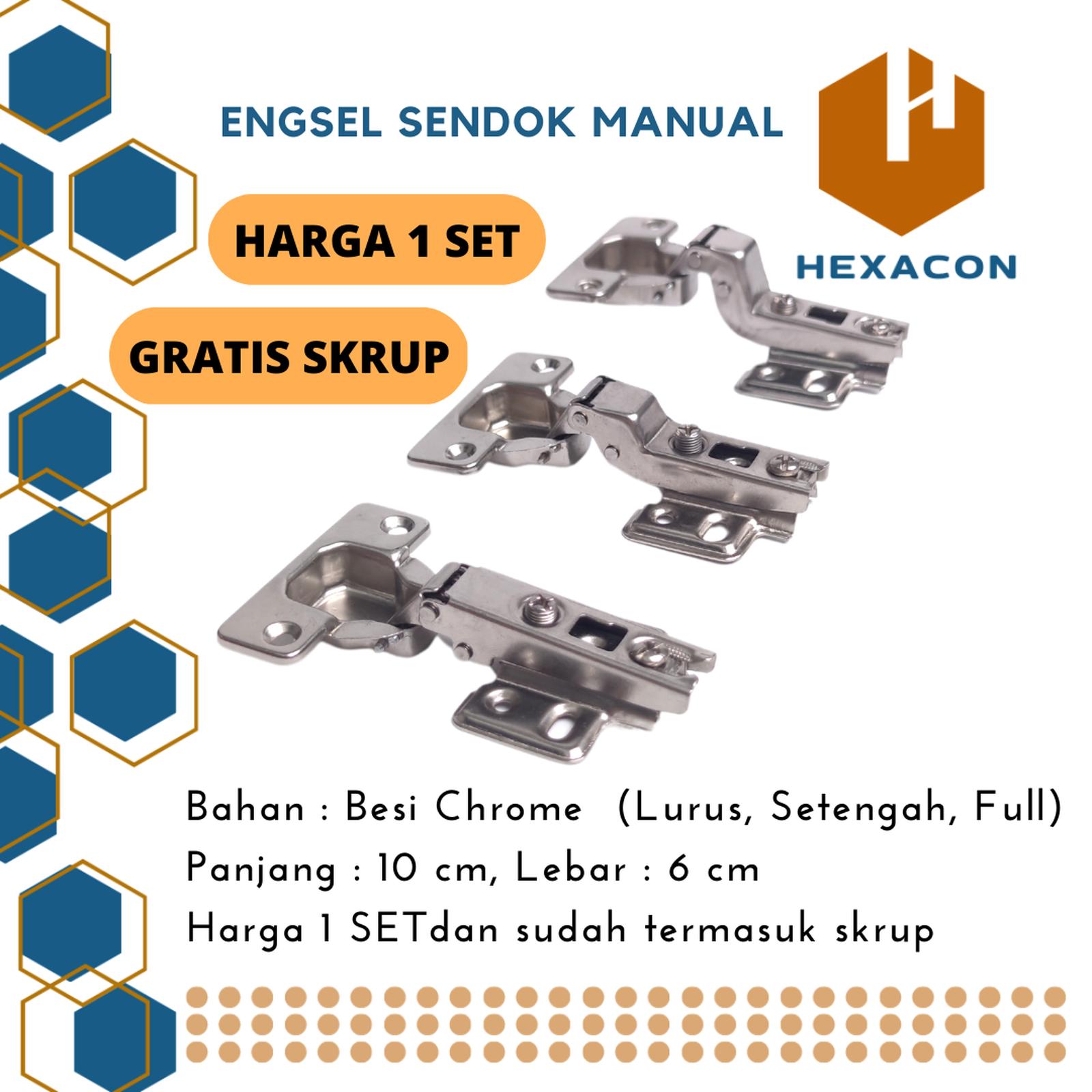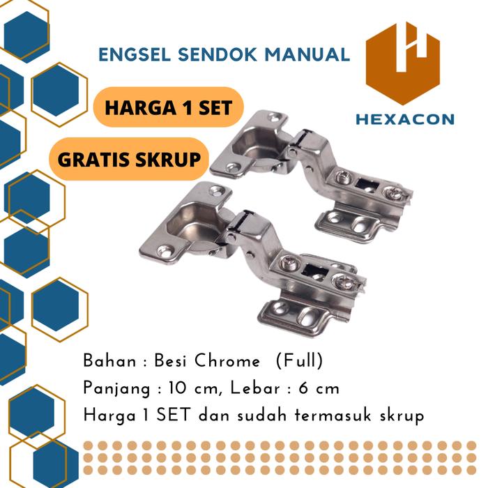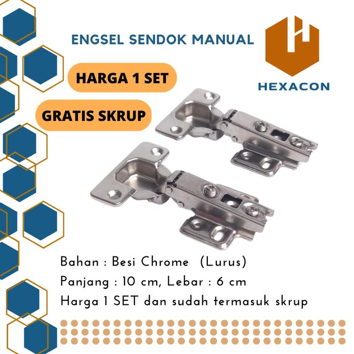 Harga yang tertera sudah untuk SATU SET (2PCS) dan sudah TERMASUK SKRUP lengkap, sehingga Anda tidak perlu membeli komponen lain secara terpisah. Dengan dimensi yang tepat, engsel ini mudah dipasang dan sesuai dengan berbagai model furniture.