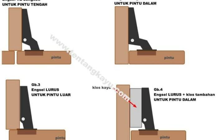 - Engsel Sendok: Jenis engsel yang bentuknya menyerupai sendok, biasa digunakan untuk memasang pintu pada kabinet atau lemari furnitur.